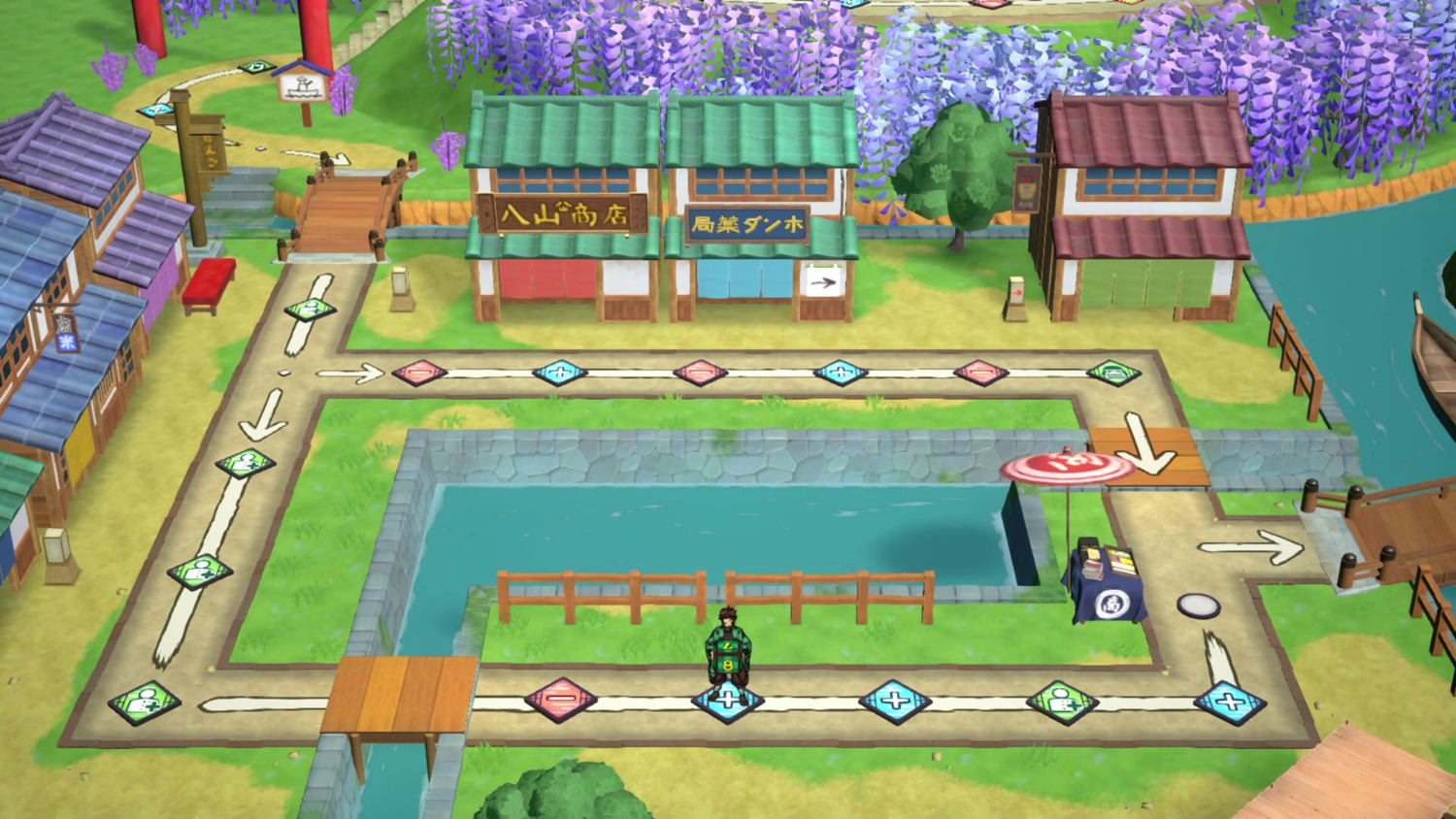 - DEMON SLAYER: KIMETSU NO YAIBA TURNS INTO A BOARD GAME: The iconic landmarks from the anime Demon Slayer: Kimetsu no Yaiba, such as Mount Fujikasane, Mugen Train, Tsuzumi Mansion and Asakusa, will appear as boards! Roll the dice to advance through the squares! Each board has a daytime and nighttime period. During the day, you will play events and mini-games to prepare for the night, where you will be searching for demons to defeat - aim to become a great Demon Slayer!